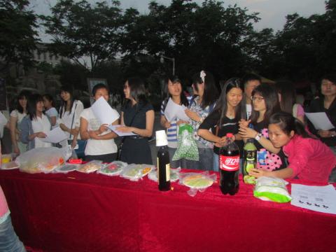 晚上7点30分,旅游学院学生会主席张进宣布此次美食文化节正式开始。伴随着“舌尖上的中国2”纪录片的播放,学院学生会生活心理部的同学们一边现场展示河南特色美食胡辣汤的做法,一边向观众讲解胡辣汤的产生与发展,制作完成后热情邀请现场参与活动的同学品尝,引得阵阵喝彩。在随后的旅游美食知识大竞猜环节中,根据游戏规则,答对题目者将获得精美礼品,而答错者将接受惩罚,喝下精心调制的百味饮料。路过的同学积极参与,现场气氛十分活跃。最后伴随着欢快的音乐,现场同学在我院工作人员的邀请下品尝现场的红酒、果盘、点心等美食,并填写心愿小卡片,与大家一起分享自己的旅游小心愿。这次活动吸引了我校同学的积极参与,取得圆满成功。