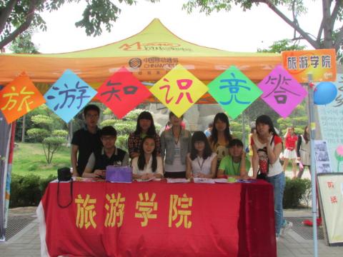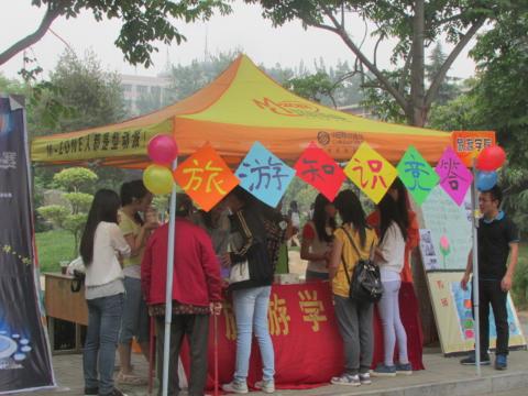 5月17日上午,旅游学院为迎接第四个中国旅游日举办的“旅游吧”主题系列活动正式拉开帷幕,“游山玩水”旅游知识竞答作为本次中国旅游日主题宣传系列活动的首场,在万人餐厅西南角举行。旅游学院学生会宣传部和体育部联合主办了此次活动。