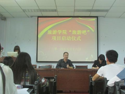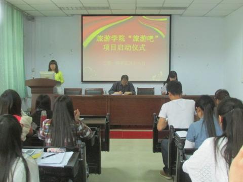 本次启动仪式由学院团委办公室主任杨允主持。王老师在发言中首先向在场同学详细介绍了推出“旅游吧”特色项目活动的背景和目的,并简要谈及具体项目开展的活动方案:“旅游吧”项目主要由“‘游山玩水’旅游知识竞答”、“‘美食美酒美景’美食文化节”、“‘舞光声色’民族服装展”、“‘我游我show’旅游照片征集展”、“‘风景纪录片’家乡话配音”、“‘五校联赛’导游风采大赛”等一系列具有旅游专业特色的活动组成。王老师号召同学们要积极参与其中并通过微博、微信、宣传板、宣传页等多种途径和媒介加大宣传力度、加强宣传效果,以期“旅游吧”专题系列活动的圆满成功。高书记在随后的谈话中从平台、口号、心态三个方面给予“旅游吧”以新的定义,他特别谈到:“旅游吧”不仅仅是一个具有旅游专业特色、内容丰富的专业实践平台,也是一个口号,号召我们时时提醒自己:我们是旅游人,要通过此次活动把“旅游吧”的概念树立起来以扩大旅游学院的知名度和影响力。随后高书记郑重宣布:旅游学院“旅游吧”特色项目正式启动。在一片热烈的掌声中,启动仪式圆满结束。