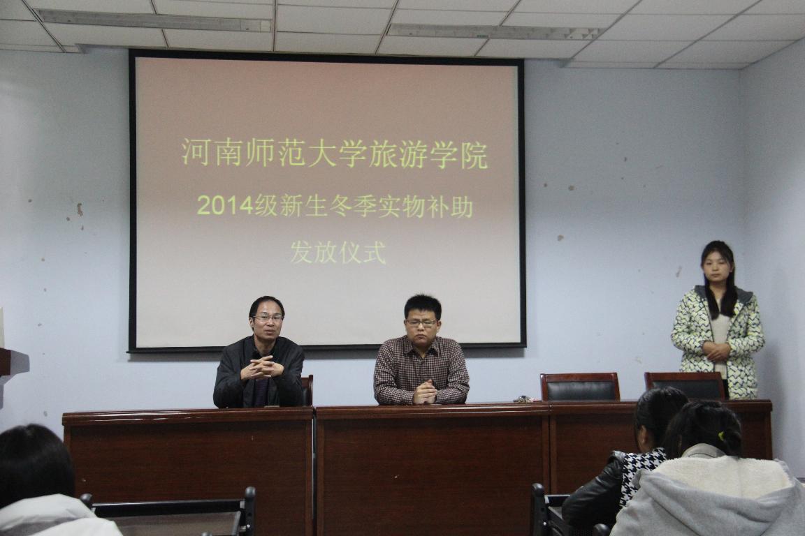 2014年11月19日中午,旅游学院冬季补助发放仪式在琢玉楼学院第二会议室举行。旅游学院党总支副书记高飞、2014级辅导员黄昭、25名受助学生及学生代表出席活动。