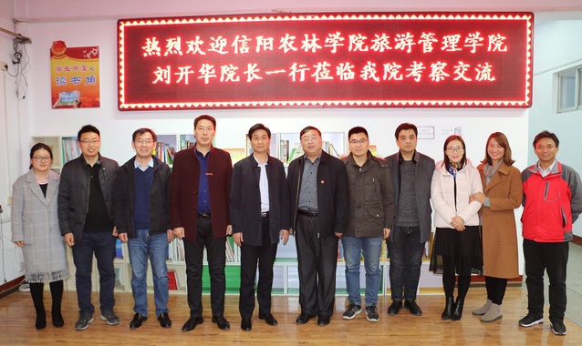 11月29日下午,信阳农林学院旅游管理学院院长刘开华、酒店教研室主任张欢欢、办公室主任厉相卿、专业课教师张利、李媛媛等一行来我院就学科建设、专业建设、学生实习安排等问题进行深度交流座谈。座谈会在旅游学院综合教研室进行,旅游学院党委书记孙昌松、院长赵成福、党委副书记吴耀武、教学副院长李伟、旅游管理系主任尉富国、科研秘书牛明铎等老师参加了交流会。