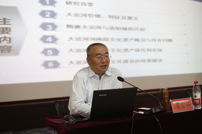 5月19日下午,活动月第三场专题讲座在物理北楼三楼报告厅如约举行,全国政协委员、洛阳师范学院校长、博士生导师梁留科教授应邀做专题报告,题为《文旅融合背景下大运河河南段保传利系统研究》。报告由赵成福院长主持,学院教师、研究生、本科生300余人参加。