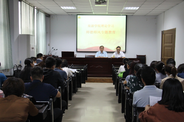 9月22日下午,旅游学院组织全体教工在学院多功能报告厅进行师德师风专题教育。学院全体教工参加学习,学习会由旅游学院党委书记冯峰主持。
