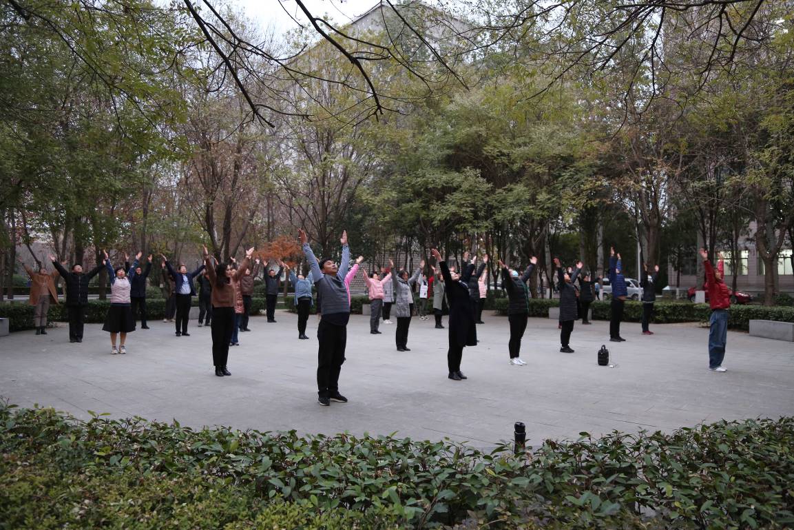12月8日下午,校工会副主席胡世巧一行莅临我院对教职工“第九套广播体操”进行达标验收。学院教职工40余人参验收。验收在琢玉楼南门花园广场进行。