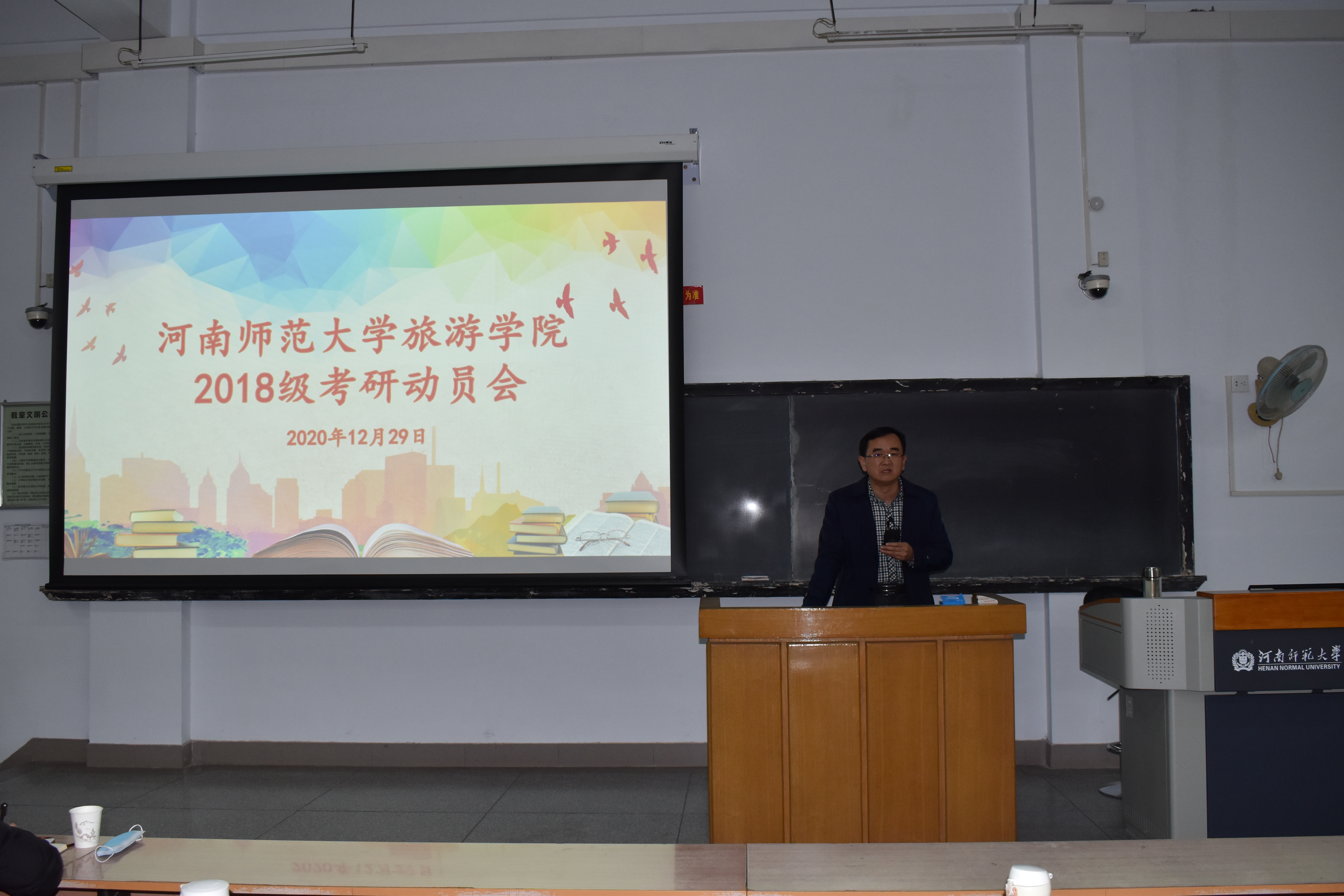 为帮助学生树立考研目标,明确考研方向,12月29日,旅游学院2018级考研动员大会于新五五四楼202教室举行,会议由旅游学院院长刘英基亲自主讲,辅导员、班主任及2018级全体学生参加动员会。