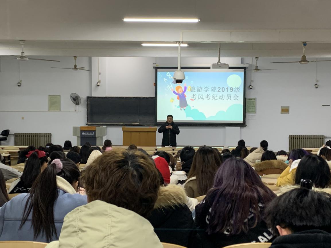为推进诚信考试建设,警惕学生提高寒假安全防范意识,1月4日下午,旅游学院于新五五四-301教室召开2019级考风考纪动员会暨寒假安全教育主题班会。2019级专兼职辅导员和全体学生参加会议,会议由2019级辅导员黄昭主持