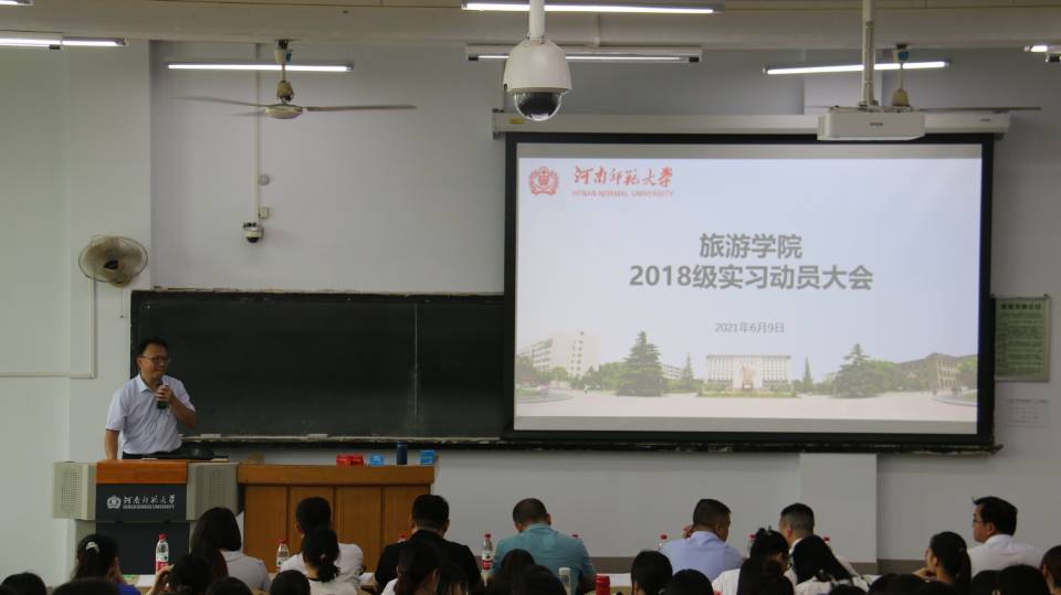 为保证专业实习质量,切实促进学生实践能力与理论素养持续提升,6月9日上午,旅游学院2018级实习动员大会暨企业宣讲会分实习动员、企业宣讲两个阶段分别在新五五四教学楼308和101教室举行。北京、上海、郑州三个地区的八家酒店和旅行社负责人、旅游学院党委书记冯峰、院长刘英基、党委副书记翟方、副院长陶玉霞、2018级各班班主任、2018级辅导员鲍伟娜及2018级全体学生参加此次会议。大会由学院实践实训中心主任魏瑞娟主持。