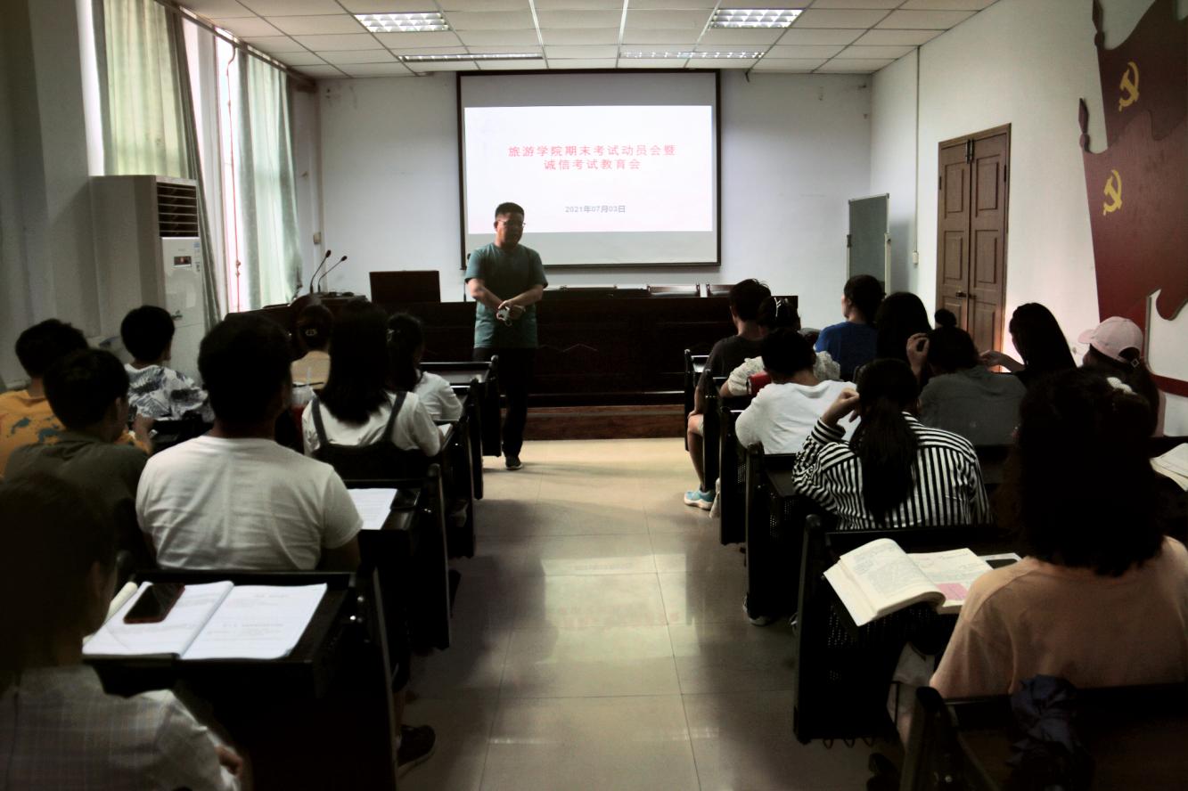 为严肃考风考纪,加强学生考前诚信观念教育,落实学生宿舍安全管理,提高学生安全意识,7月3日下午,旅游学院于琢玉楼第二会议室召开期末考试动员会暨诚信考试教育会。各年级专兼职辅导员及各年级主要班委参与此次会议。