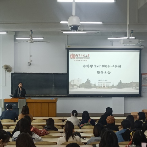 为进一步推进2022届毕业生的实习就业工作,加强对应届毕业生专业实习的指导和帮助,2月28日上午,旅游学院于新554楼308教室召开了2018级实习安排暨动员会。学院党委书记冯峰、副书记翟方、学院实习实训中心主任魏瑞娟、教学秘书杜媛和辅导员鲍伟娜以及2018级在校毕业生参加了此次会议,会议由旅游学院副院长陶玉霞主持。