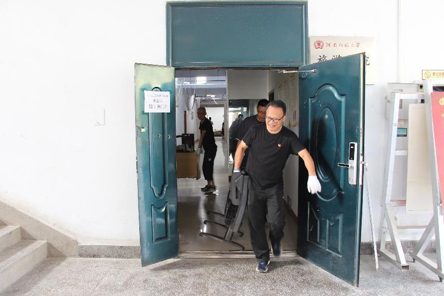座谈会后,与会党员参加了“庆七一”主题党日志愿服务活动。旅游学院院长刘英基就活动内容进行了安排部署,党员同志们冒着酷暑对学院一楼办公场所进行了清理搬迁,为学院全面整修、消除安全隐患、改善办学条件做好准备。