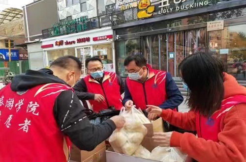 针对封控小区或单元楼教职工,学院开展“线上”“线下”双关怀。线上,学院组织建立互助群,学院领导纷纷向大家给予精神关怀,并表示党委、工会一直关注着大家,全力以赴做好保障工作。线下,学院成立志愿服务队,精心采购必须生活物资,学院党委书记冯峰、院长刘英基带队为封控或单元楼教职工提供生活补给。