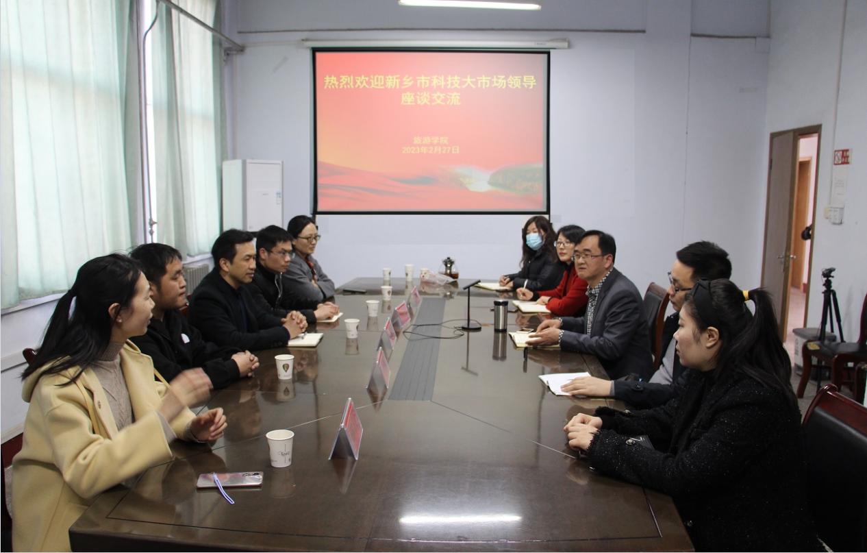 为进一步促进2023届毕业生就业工作质量提升,全面深化校企合作、推动实习带动就业,有力保障学院毕业生更加充分、更高质量就业,2月27日下午,新乡科技大市场黄云鹏院长带领新乡市房地产协会副秘书长马林林、兴业证券新乡总经理韩志平、河南广播电视台大象新闻客户端郑伟,新乡市交通运输局团委副书记、公交集团党办主任郝征来到旅游学院开展座谈交流。旅游学院院长刘英基及其他相关负责人加此次会议。