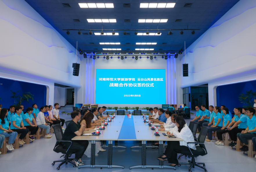 云台山集科学价值、美学价值、历史文化价值于一体,不仅拥有“全球首批世界地质公园、首批国家5A级旅游景区、五钻级智慧景区”等世界级、国家级称号,还获得“最佳山地旅游目的地奖、第一批国家级文明旅游示范单位、大国之旅-中国旅游景区综合服务能力大奖”等诸多荣誉,近年来积极推动文旅融合、数字化应用与创新发展,是国内旅游产业高质量发展的典型代表。未来在双方精诚协作下,必定能够成为旅游学院研究生实习的优质平台,为学院人才培养与学科建设助力增彩。