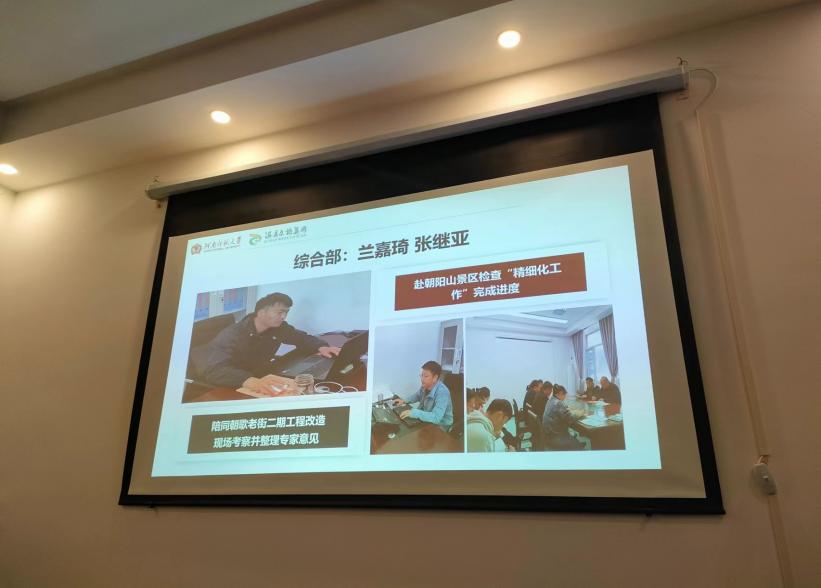 座谈伊始,郭海涛首先对本阶段研究生实习工作进展进行了全面介绍,对同学们的实习态度与工作能力给予了高度认可,指出基地十分重视实习生的全面锻炼,通过轮岗体验、富有特色的文旅活动组织参与调查研究课题的有序推进,提高了大家的综合素养,接下来会进一步增加实习工作的挑战性,在文旅投资与市场营销等领域挖掘实习生潜力,实现实习与就业的充分挂钩。接着兰嘉琪代表实习同学从文旅集团概况、淇县全域旅游资源分布、实习岗位职责、阶段性实习成果、调研选题的进展、实习心得体会和未来展望等进行汇报,充分展现了该组实习工作的扎实、有序与成效。与会导师围绕同学们的选题与调研情况,结合基地实际情况给予了详细的指导。刘英基代表学院感谢基地给予实习生优质实习岗位与全面培养的用心安排,指出同学们不仅对淇县全域旅游发展现状、文旅项目投资与运营机制、文旅商户的选择与管理等有了深度的参与与思考,而且毕业选题全部结合基地,实现了我院“三位一体”融通发展的研究生培养模式的真正落地。进一步强调了实习实践对于研究生专业能力培养、职业生涯规划、就业择业等方面的重要意义,激发了实习生的集体共鸣。