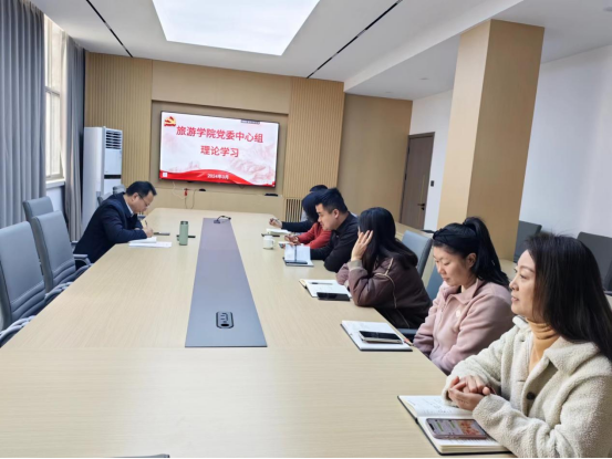 3月11日,旅游学院党委理论学习中心组在学院综合教研室开展中心组理论学习。院党委中心组成员参加,会议由院党委书记冯峰主持。