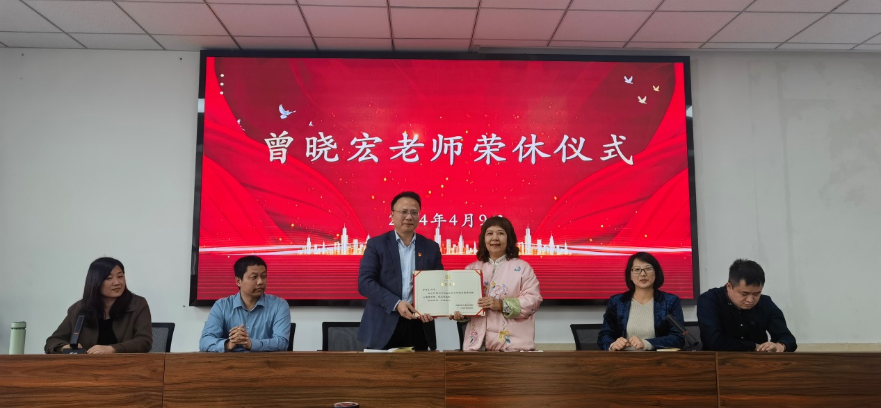 党委书记冯峰对曾晓宏老师为学院各项工作顺利展开付出的辛勤劳动和贡献表示衷心感谢并为曾晓宏老师颁发光荣退休证书。他表示,学院取得的成就得益于各位荣休老师的付出,学院未来的发展仍要仰赖大家的鼎力支持,希望曾晓宏老师继续关心、关注、支持学院的发展。