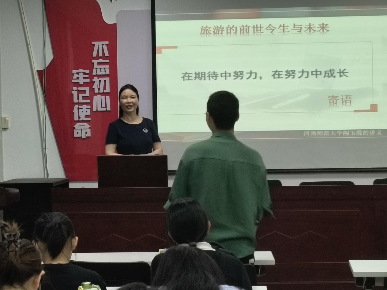 本次讲座由陶玉霞教授主讲。陶玉霞教授追溯了旅游学的起源,探讨了其作为学科的演变过程,以及未来可能的发展方向。陶老师的讲解条理清晰,从旅游学的基本概念出发,深入探讨了旅游学的历史与发展,旅游学认知,旅游学就业前景,旅游学的未来等核心议题。她用其丰富的知识储备为同学们展开了一场知识盛宴。她强调,旅游不仅仅是一种休闲方式,更是一种文化的交流与传承。她鼓励同学们在学习过程中,要注重理论与实践的结合,培养自己的跨文化沟通能力和批判性思维。