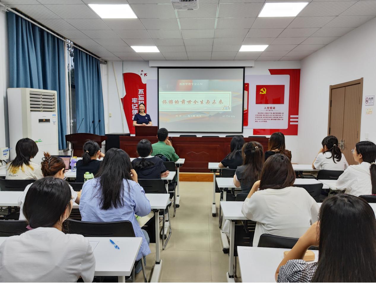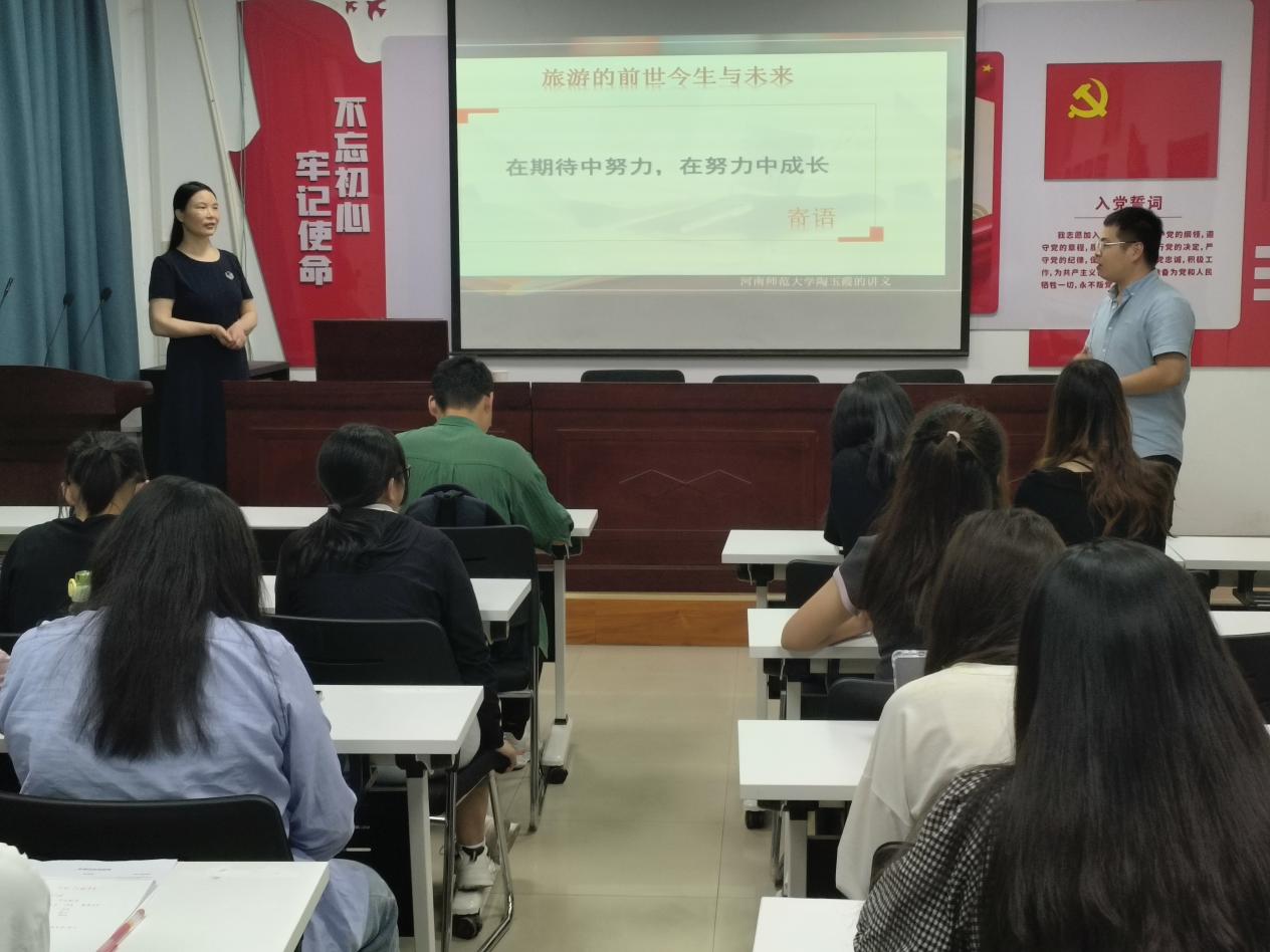 为提升同学们对旅游学专业的认知和理解,为他们的学术成长和未来职业发展奠定基础,5月26日晚上19:30,旅游学院于多功能报告厅举办了旅游学专业认知专题讲座。旅游学院陶玉霞教授、2023级实验班班主任朱鹏、2022级实验班班主任刘迪以及2023级实验班全体同学参加了此次讲座。讲座由朱鹏老师主持。