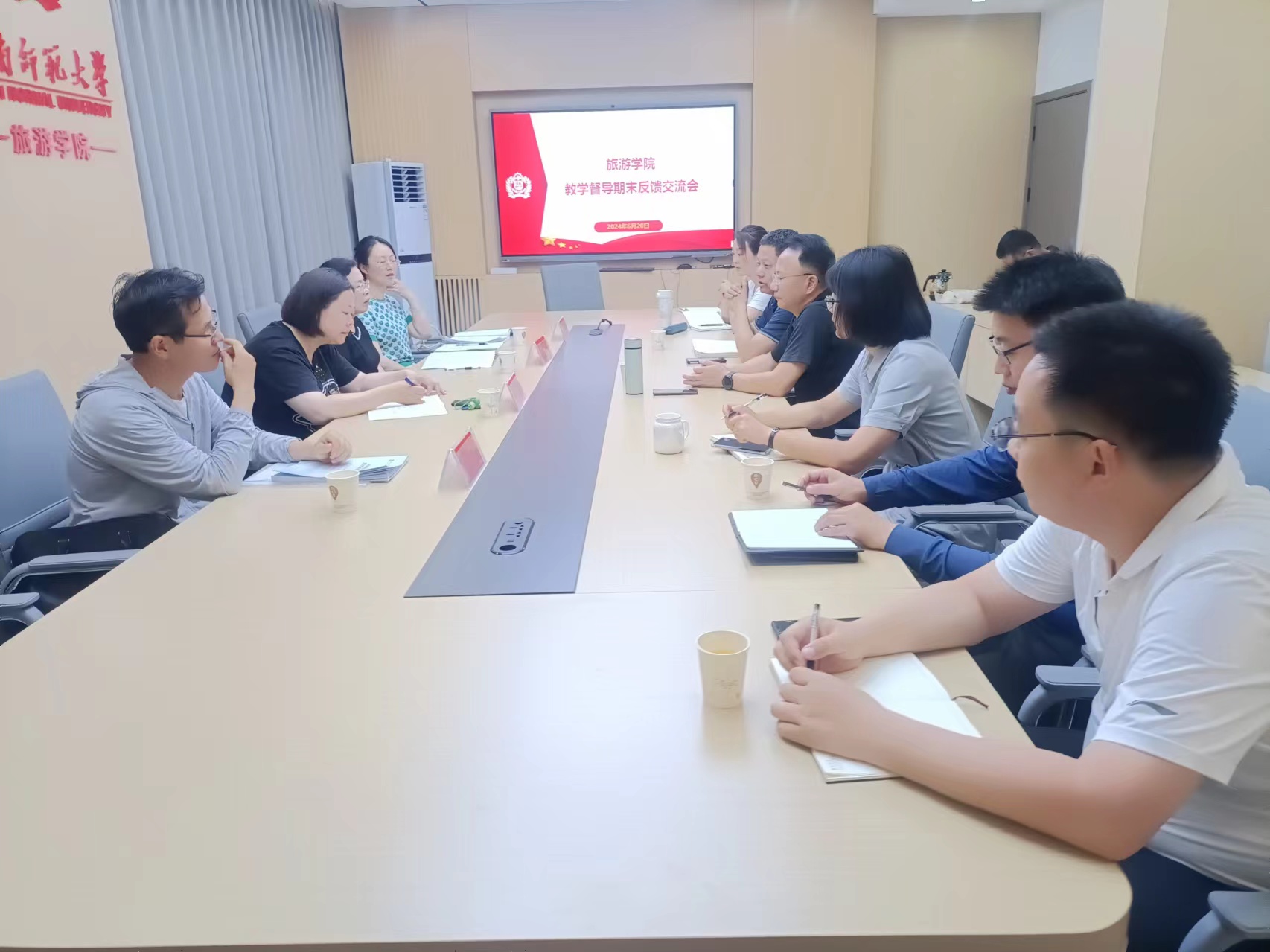 2024年6月20日上午,我院召开了本科教育教学质量期末督导交流会。会议邀请了负责我院督导工作的校级督导王晔、任同芹、熊建萍和汤清虎。参加会议的人员还有旅游学院党委书记冯峰、教学院长付强、党委副书记翟方、各教研室主任、教学秘书以及学院同行督导成员等。会议由付强主持。