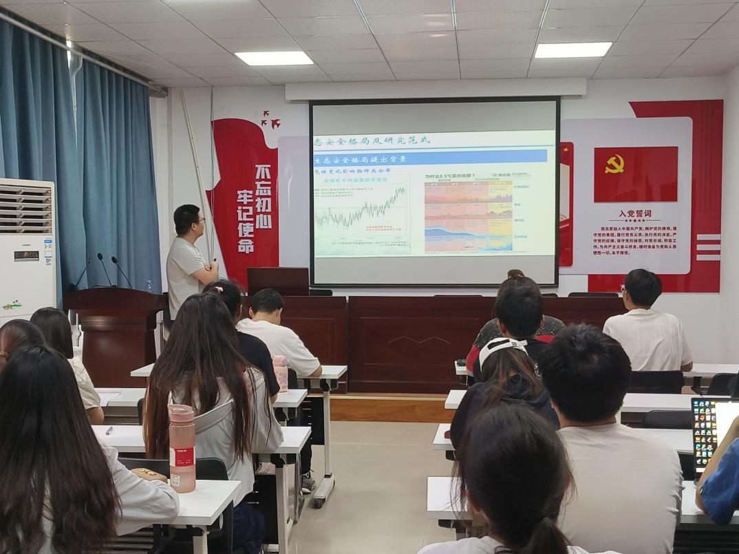 讲座伊始,张志明向同学们介绍了“挑战杯”赛事的基本情况,以及赛事注意事项。卢雅焱以“区域生态安全评价”为题,围绕生态格局、资源地、生态走廊、优化格局和前沿进展五方面对项目进行介绍。针对调研方法,他重点讲解了生态走廊方面的提取方法。李广超则以“耕地碳水利用效率时空格局及驱动因素”。他从项目和团队成员、项目介绍、项目进展和未来期望四个方面介绍了“耕地碳水利用效率时空格局及驱动因素”的相关信息。在项目介绍方面,他对项目的研究方向、研究方法、研究思路和研究成果进行了详细说明。两位主讲老师的精彩讲解得到了在场学生的连声赞叹,他们建议同学们主动分析历年“挑战杯”竞赛获奖作品的选题方向,学会把握选题的不同视角,寻找极具时代性、现实性、政策性强的社会热点问题进行项目设计。