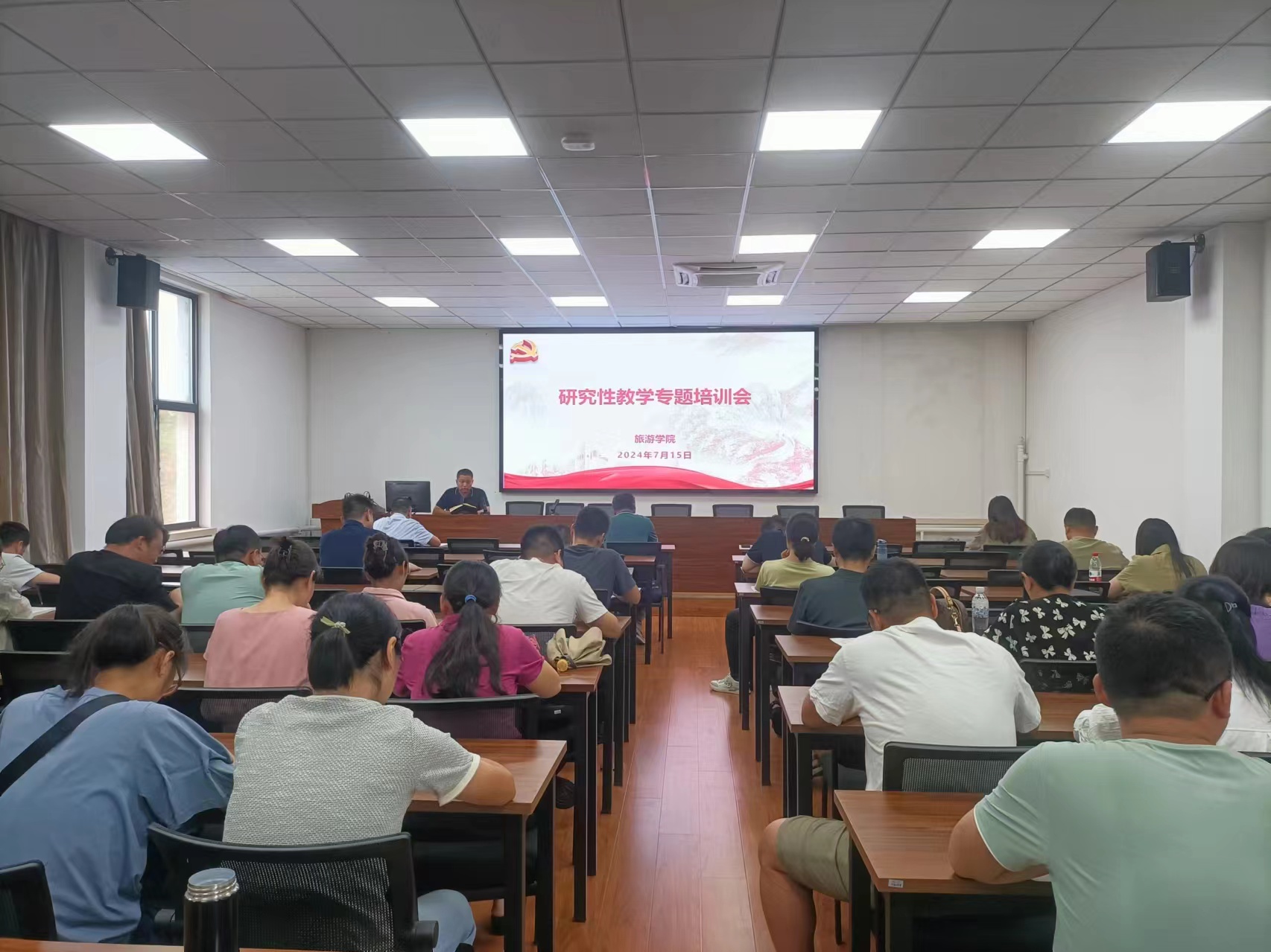 2024年7月15日下午,旅游学院组织全院教师召开研究性教学专题培训会。旅游学院教学院长付强主持会议,学院领导班子及全体教职工参会。