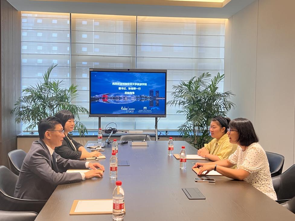 莫干山地信开元名庭大酒店副总经理庞立峰、人力资源总监章璐璐、人力资源部招聘主管余婷婷热情接待我院一行到访,双方就校企合作、人才培养、学生实习与就业等问题进行了广泛探讨和交流。庞立峰首先对德隆控股集团发展情况、酒店的日常运营及管理模式进行了简要介绍,同时表达了对于高层次、能力强的酒旅行业人才的迫切需求,希望通过双方紧密的合作与良好的成果进一步强化校企对话、共同促进就业。紧接着,章璐璐对酒店实习生、管培生培养计划等方面进行了详细介绍,她表示,当前酒旅行业已驶入改革创新快车道,行业变革驱动新的用人需求,培养更多契合酒店行业发展的高质量毕业生既有助于解决酒旅行业的实际问题,也能为学生就业“铺好路”。翟方对于酒店方的观点表示认同,并分享了学院与其他企业深入合作的经验方法,通过校园招聘、宣讲会、职业大赛等方式让企业走进校园、让学生了解企业,另一方面,校方也会不断探索新的协同育人机制,培养具有创新能力、符合就业需求的复合型应用人才,为毕业生创造更多机会。