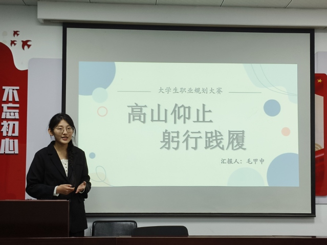 本次比赛以“筑梦青春志在四方,规划启航职引未来”为主题,分为成长赛道和就业赛道两个赛道。在成长赛道上,选手们分别从自我评估、职业分析、计划实施和评估调整等不同方面对自己的职业规划书进行详细讲解,充分展现自己的职业规划能力与明确自我认知。在就业赛道上,选手们就职目标分析、个人优势、未来规划等方面进行阐述,并表达自己对未来的美好期盼。在每位选手展示完成后,评委对选手展现的分析问题及逻辑思维能力予以肯定并进行现场提问,并针对选手在展示环节出现的问题和书面报告上的不足提出合理的指导意见。在激烈的角逐后,共选拔出六名选手进入校级比赛。