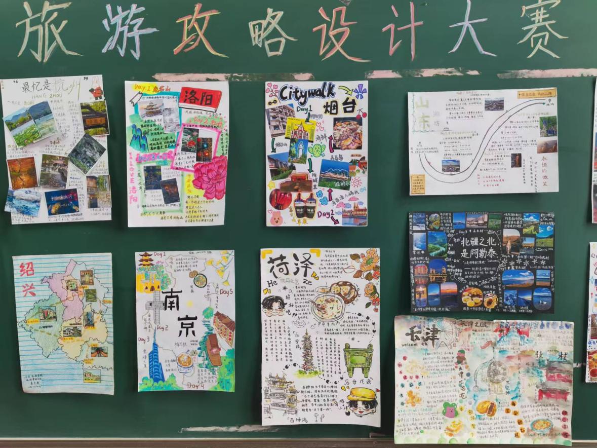 参赛学生选择城市或旅游景点进行创作,以纸质作品的方式呈现,同学们充分发挥自己的创意,他们采用了绘画,拼贴,剪裁,雕刻等多种形式创作出了许多兼具实用性和美观性的作品。参赛作品风格各异,有的以图文并茂的形式展现了城市的自然风光和人文景观;有的则通过手绘地图、插画等形式,将城市的旅游线路和特色景点生动呈现,同学们用照片记录回忆,用文字叙述感悟,用设计展现创意,每一份作品都凝聚了参赛者的心血和智慧,展现了他们对旅游文化的热爱和执着,同时也将中国城市的魅力展现的淋漓尽致。