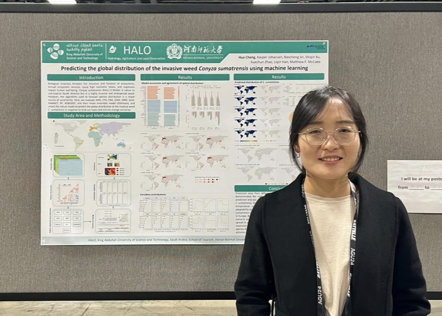 程华以 “ Predicting the global distribution of the invasive weed Conyza sumatrensis using machine learning”为题在“Emerging Machine Learning Approaches for Process Understanding in Ecosystem Sciences”分论坛进行交流展示,受到了与会专家的关注和好评。会议期间,程华还参加了相关领域多个分会场的学术报告,并与国际同行、专家进行交流,推进了旅游学院科研国际化合作的开展。