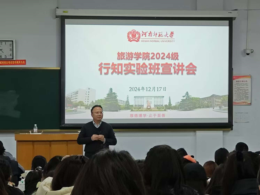 12月17日下午,旅游学院2024级行知实验班宣讲会于新五五四楼201教室顺利召开。旅游学院党委书记冯峰、副院长付强、2022级班主任刘迪、2023级班主任朱鹏、2024级班主任孟帅康、2024级本科生辅导员闫依铭及全体本科生参与此次宣讲会。宣讲会由付强主持。