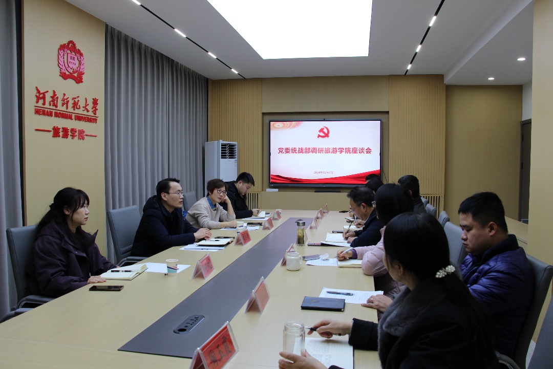 旅游学院党委书记冯峰从学院基本情况、院党委高度重视、加强培训提升工作能力,分工合作做好统战工作等方面介绍了学院相关工作的整体情况,希望校党委统战部通过组织交流、加强培训、悉心指导提升基层统战工作能力,为学校“双一流”建设保驾护航。旅游学院党委副书记翟方、副院长端木凡昌分别介绍了学院统战工作开展情况和经验做法。与会人员进行了结合实际工作进行了深入交流。