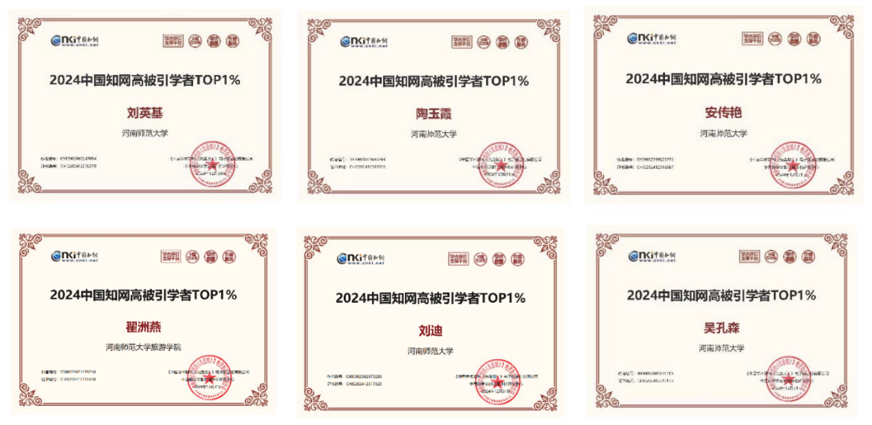 近年来,旅游学院注重科研的投入与支持,学院学术氛围浓厚,高水平科研成果持续在国际国内学术顶刊获得发表。2024年中国知网高被引学者榜单的发布受到国内外众多学者、机构等的高度关注,不仅展示了学者研究成果在学术或科研领域的影响力,也是对学院入选学者学术影响力的高度认可。