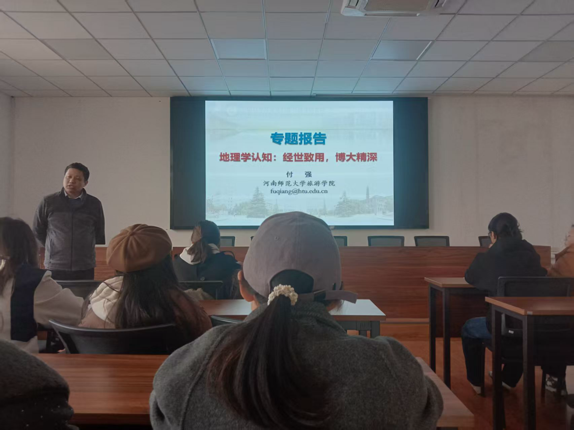 38日下午,旅游学院2024级行知实验班于学院三楼行知大讲堂举办了《地理科学类专业认知》讲座,旅游学院副院长付强及实验班全体同学参加此次讲座。