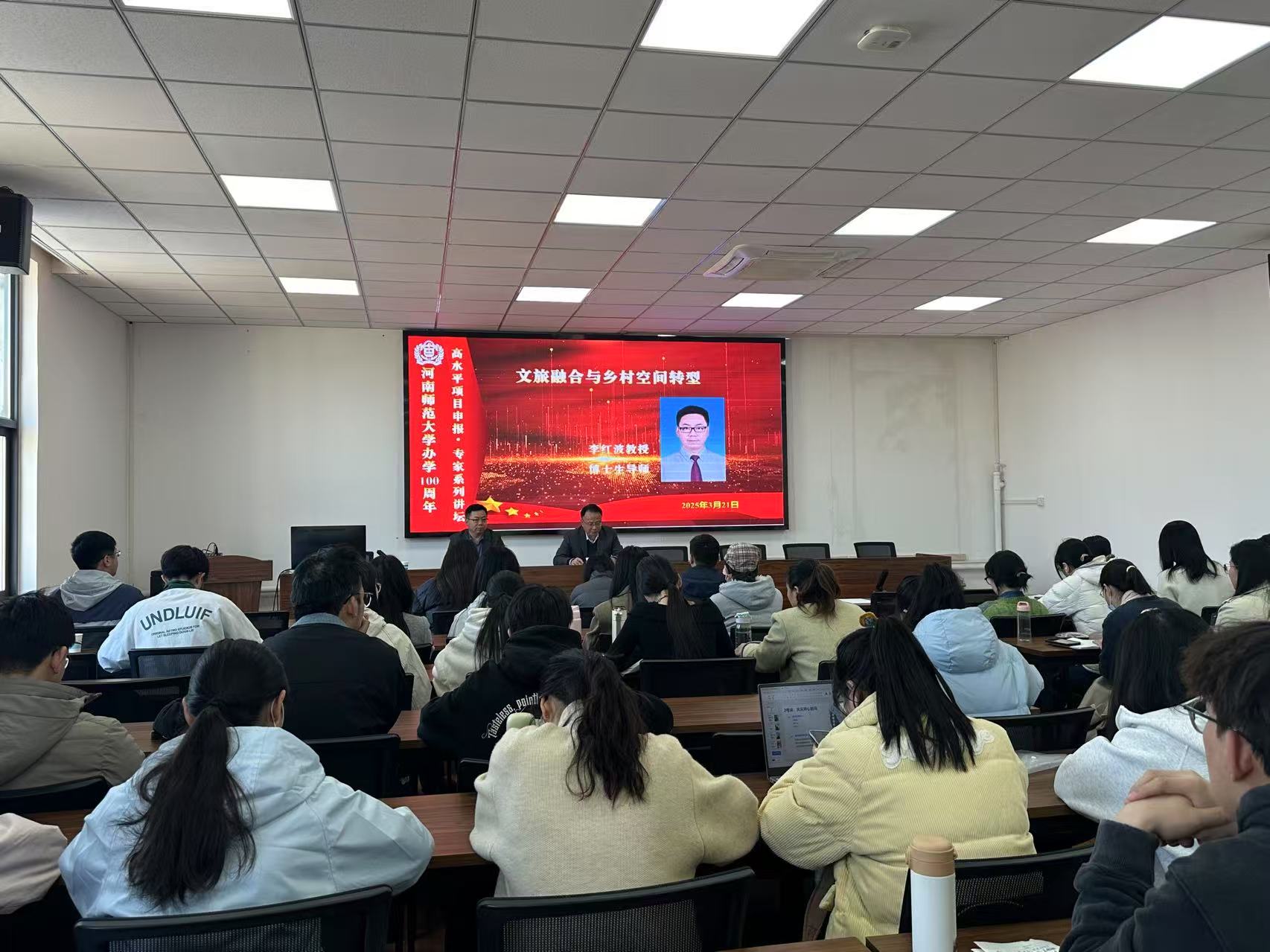 3月21日上午,应旅游学院邀请,南京师范大学李红波教授在学院三楼行知大讲堂为我院师生做了题为《文旅融合与乡村空间转型》的学术报告。会议由学院党委书记冯峰主持,70余位师生参会。