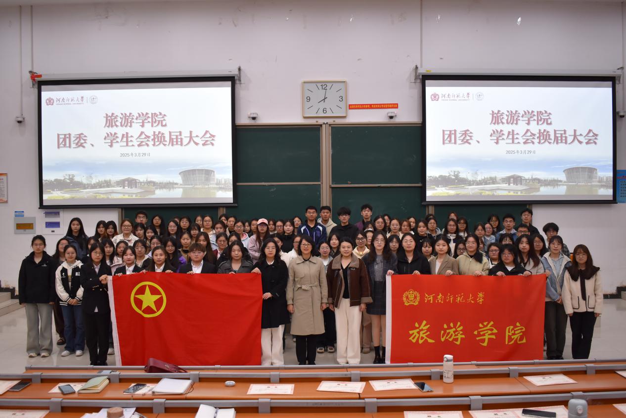 3月29日,旅游学院第十四次学生代表大会顺利召开,大会选举产生了旅游学院新一届学生会主席团成员并于当晚在文昌楼127教室举行换届大会,旅游学院党委副书记翟方、团委书记张志明、2024级辅导员闫依铭及全体团学成员参加此次会议。