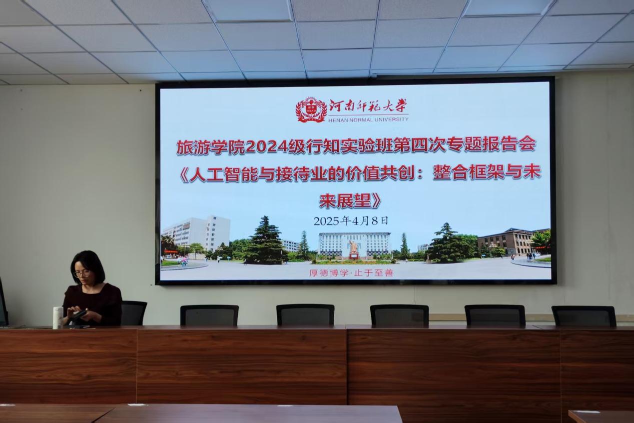 4月8日中午,旅游学院2024级行知实验班在学院3楼行知大讲堂成功举办第四次专题报告会,主题为《人工智能与接待业的价值共创:整合框架与未来展望》。此次报告会由旅游学院宋晓老师主讲,班主任孟帅康主持。