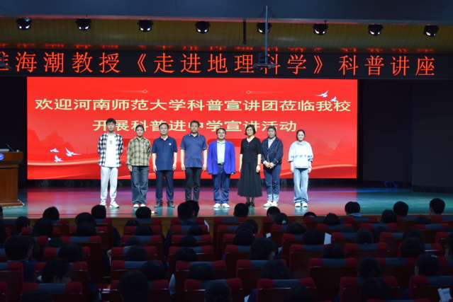 为普及地理科学知识,助力青少年科学素养提升,417日下午,伟德官网下载苹果版旅游学院与河南省实验中学首次联合举办地理科普宣讲活动。旅游学院副院长付强、地理教育教研室主任雒海潮、实习实训主任耿妍及实习生代表前往河南省实验中学开展《走进地理科学》科普宣讲活动。活动由河南省实验中学王喜峰老师主持,该校400余名选科地理的高中学生参与其中。