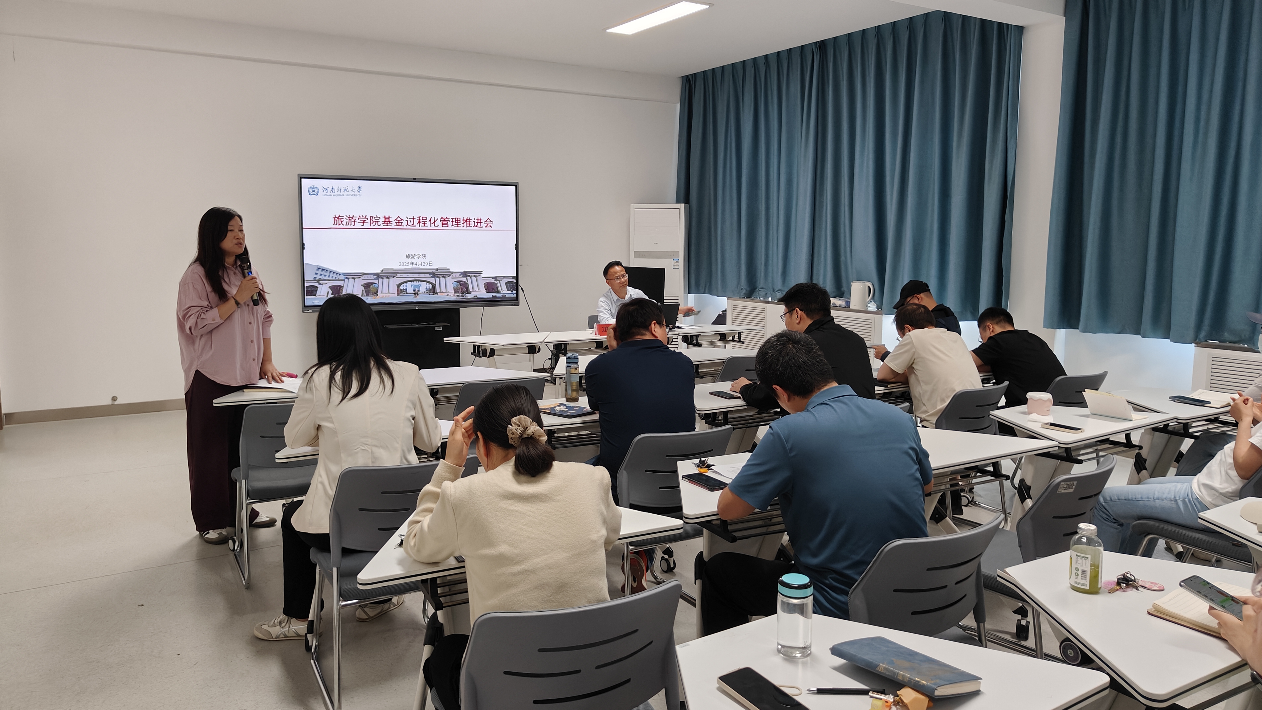 为扎实推进国家基金项目申报与管理工作,提升科研创新能力和成果质量,4月29日下午,在二楼大数据与智慧旅游实验室旅游学院召开了基金过程化管理推进会。学院全体教师近50人参会,会议由王二红副院长主持,学院党委书记冯峰主讲。