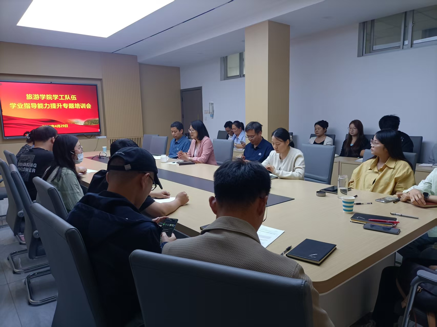 4月29日下午,我院在综合教研室组织召开旅游学院学工队伍学业指导能力提升专题培训会。学院教学院长付强、党委副书记翟方、教学秘书杜媛、各教研室主任以及各年级辅导员和班主任参加培训。会议由付强主持。