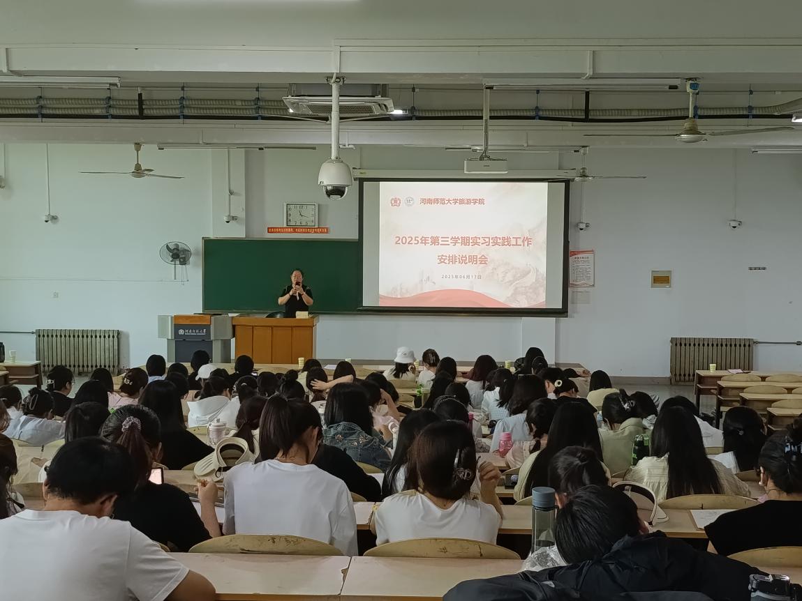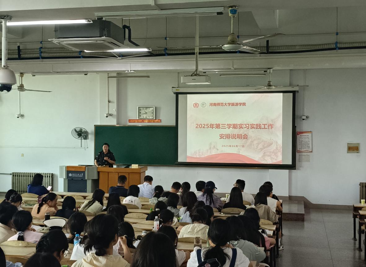 为切实保障我院2025暑期小学期实习工作有序推进,提升学生专业实践能力,增强人才培养与行业需求的契合度617日,旅游学院在新554303教室分年级、分专业召开了2025暑期小学期实习工作安排部署旅游学院党委书记冯峰、副院长付强、各系主任、辅导员、实习指导教师及参加2025年暑期小学期的学生们到场参会。