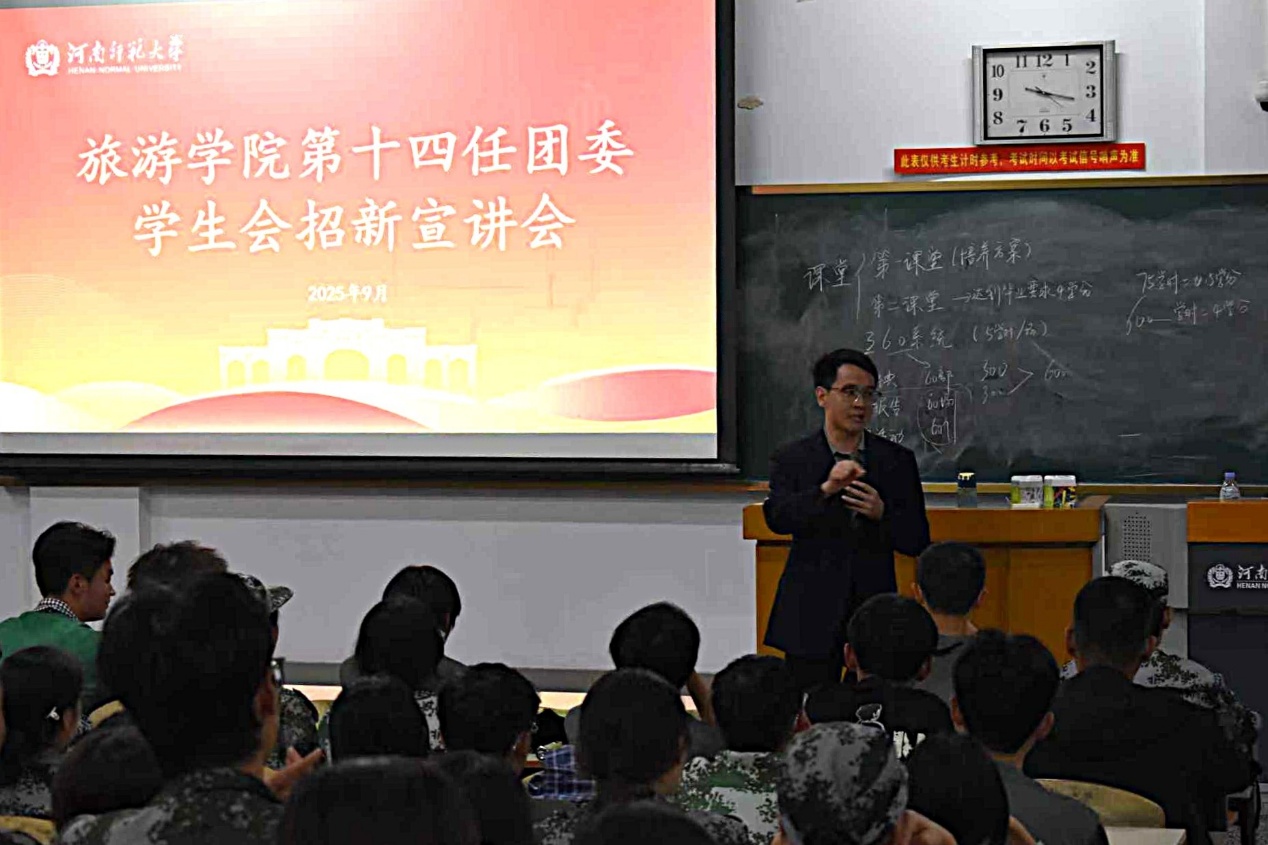 为持续加强旅游学院团委学生会的组织建设,进一步搭建师生沟通桥梁,拓展学生全面发展平台,旅游学院于917日晚在新554-202教室召开第十四任团委、学生会招新宣讲会。旅游学院团委负责老师团委学生会主席团成员各部门负责人以及2025级全体本科生参加会议。