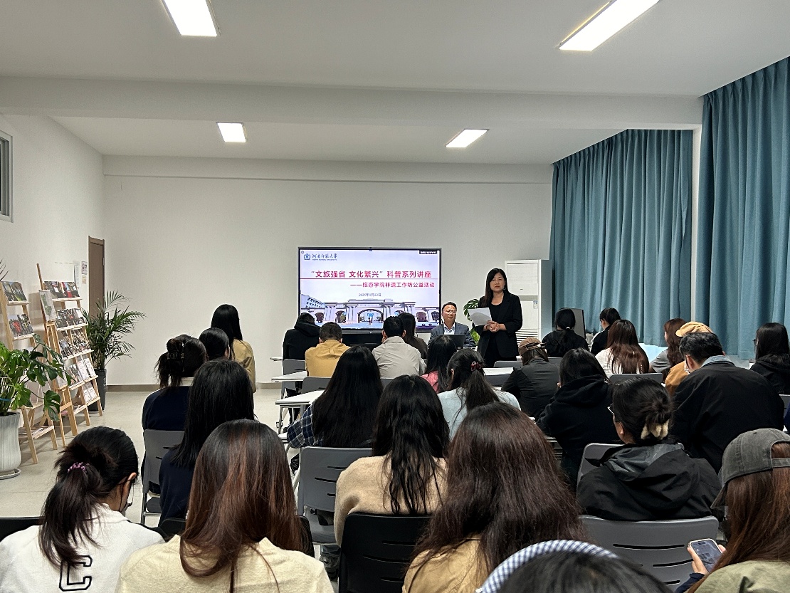 启动会伊始,王二红副院长在致辞中指出,本次系列讲座并非一次常规的科普活动,旨在面向学生群体,搭建一个融合科普传播、科研探索、社会服务等的创新性交流平台。旅游学院将充分发挥学科优势,依托科普讲座平台,推动文化与旅游深度融合,助力河南文化繁荣与旅游产业高质量发展。“文旅强省·文化繁兴”科普系列讲座将围绕书法非遗、民俗非遗、国别非遗、美食非遗、古代旅行文化、地域地质旅游、数智文旅发展、传统村落保护与活化利用等多个领域,邀请院内专家进行专题分享,旨在通过系列学术交流与科普活动,拓展师生学术视野,服务地方经济社会发展。
