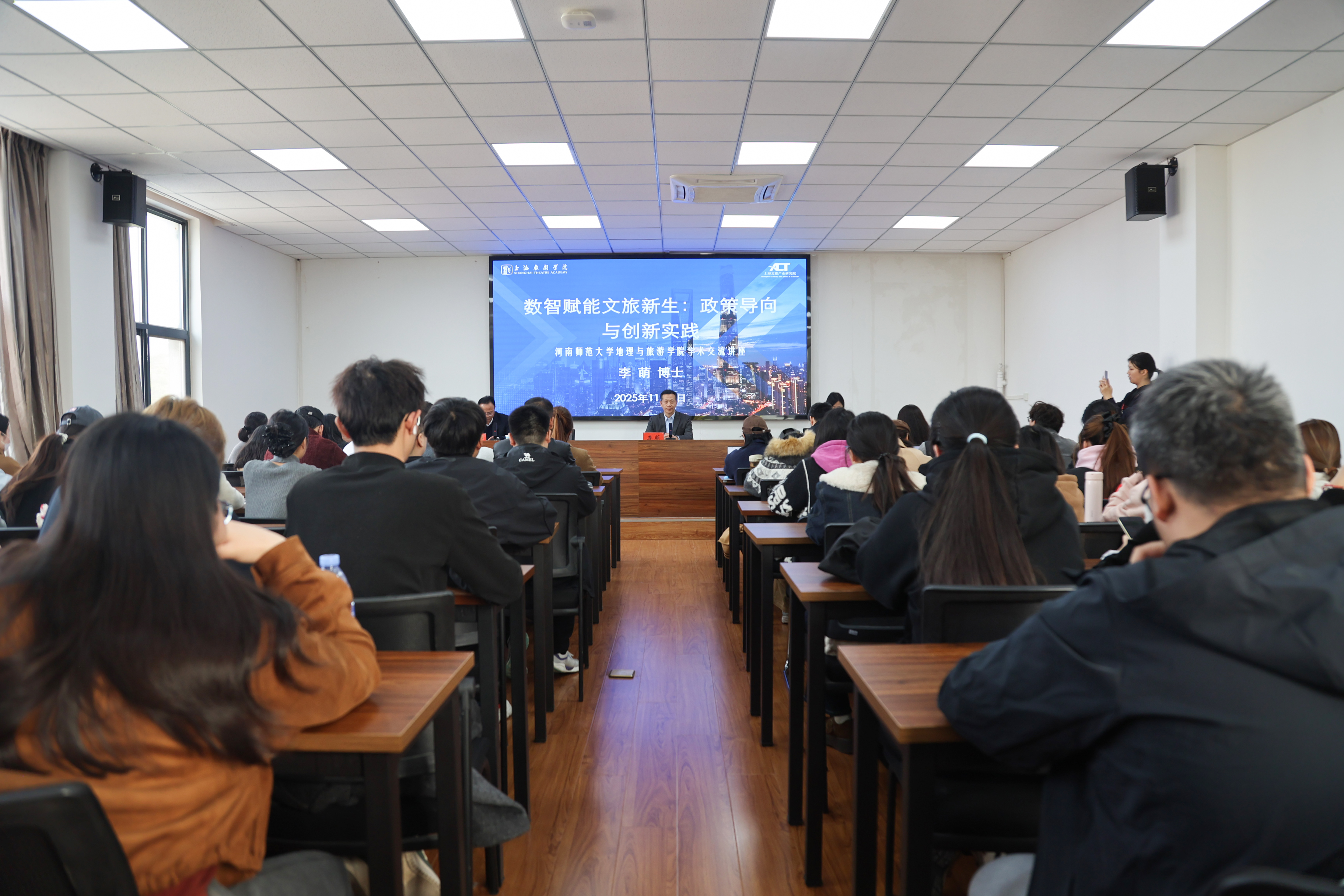 113日下午,在地理与旅游学院三楼行知讲堂召开了一场别开生面的学术交流会会议特邀上海戏剧学院李萌研究员作题为《数智赋能与文旅新生:政策导向与创新实践》的讲座。学院党委书记冯出席会议并致辞,本次会议由学院副院长二红主持,学院近百名师生共同参与。