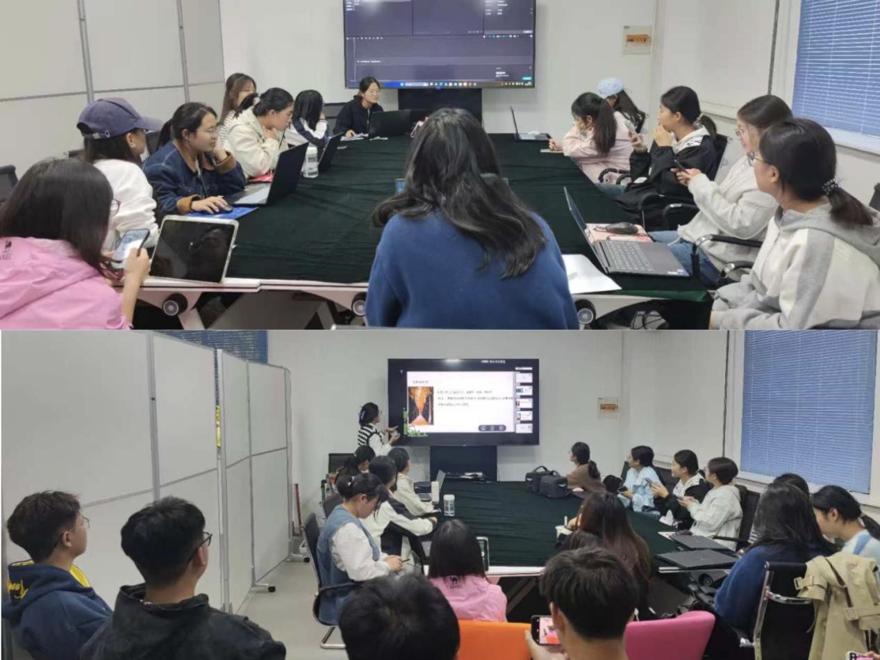 融媒体中心负责人涂徐余采取“零基础适配”的教学思路。她运用通俗易懂的语言,配合实时屏幕操作演示,耐心带领大家熟悉剪映软件的基本界面和常用功能,细致讲解素材导入、轨道编辑、基础剪辑等实用技能。为帮助同学们更好地运用于实际,她还围绕校园活动记录、日常风景拍摄等常见主题,分享了素材筛选与节奏把控的技巧,真正做到学以致用。融媒体中心负责人王艺菲和崔玥结合同学们的日常拍摄需求,分别从理论和实践两方面展开教学。王艺菲系统讲解了拍摄主题的确定、构图原则、色彩搭配与光线运用等核心知识,并现场演示不同光线条件下的拍摄效果,让抽象知识变得直观可感。崔玥则结合自己的作品,分享了在不同场景中捕捉美好瞬间的经验,鼓励同学们在生活中大胆尝试,用镜头记录身边的自然之美与人文之情。