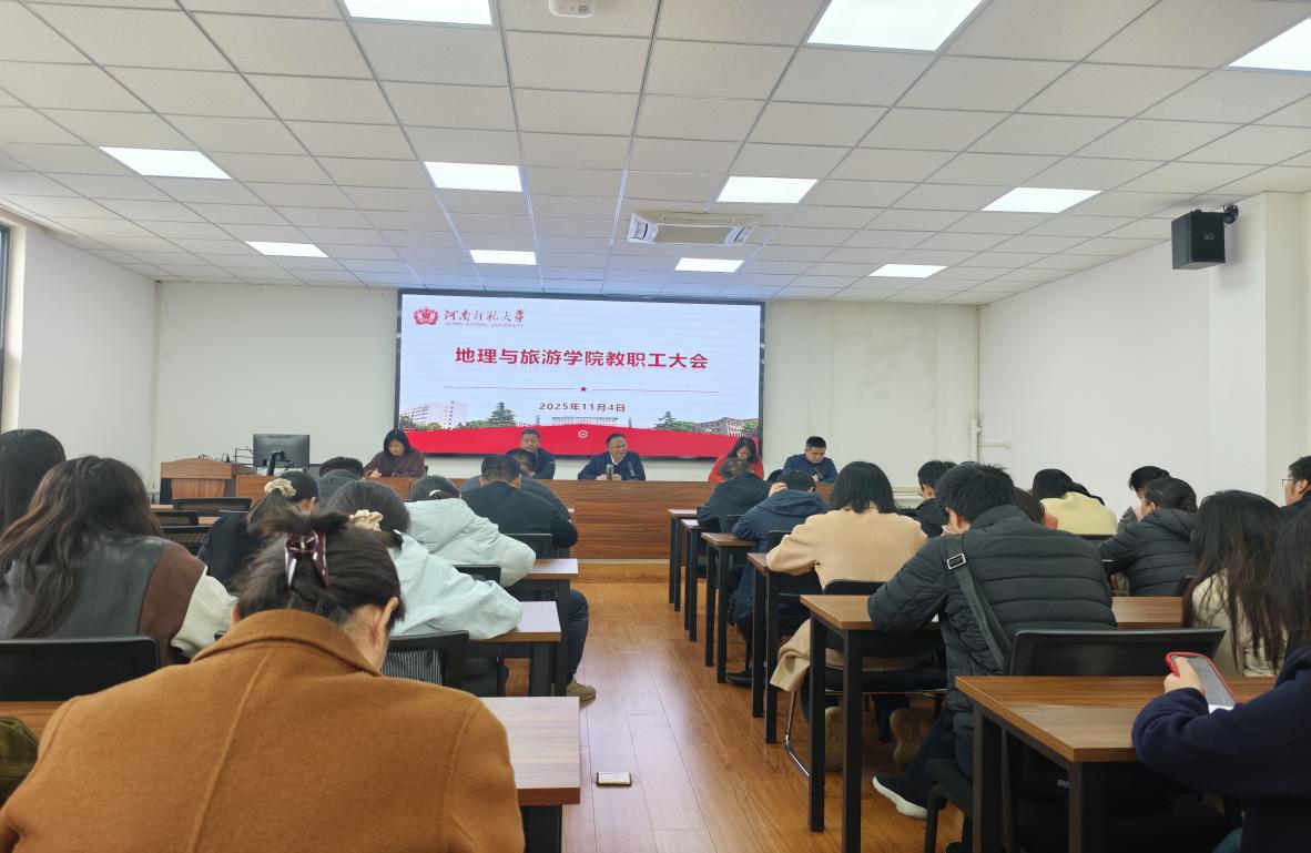 为凝聚发展共识,激发奋进力量,11月4日下午,地理与旅游学院于三楼行知讲堂召开全体教职工大会。学院党政领导班子成员及全体教职工齐聚一堂,旨在部署近期重点任务,稳步推进各项工作有序开展。大会由学院工会主席翟方主持。