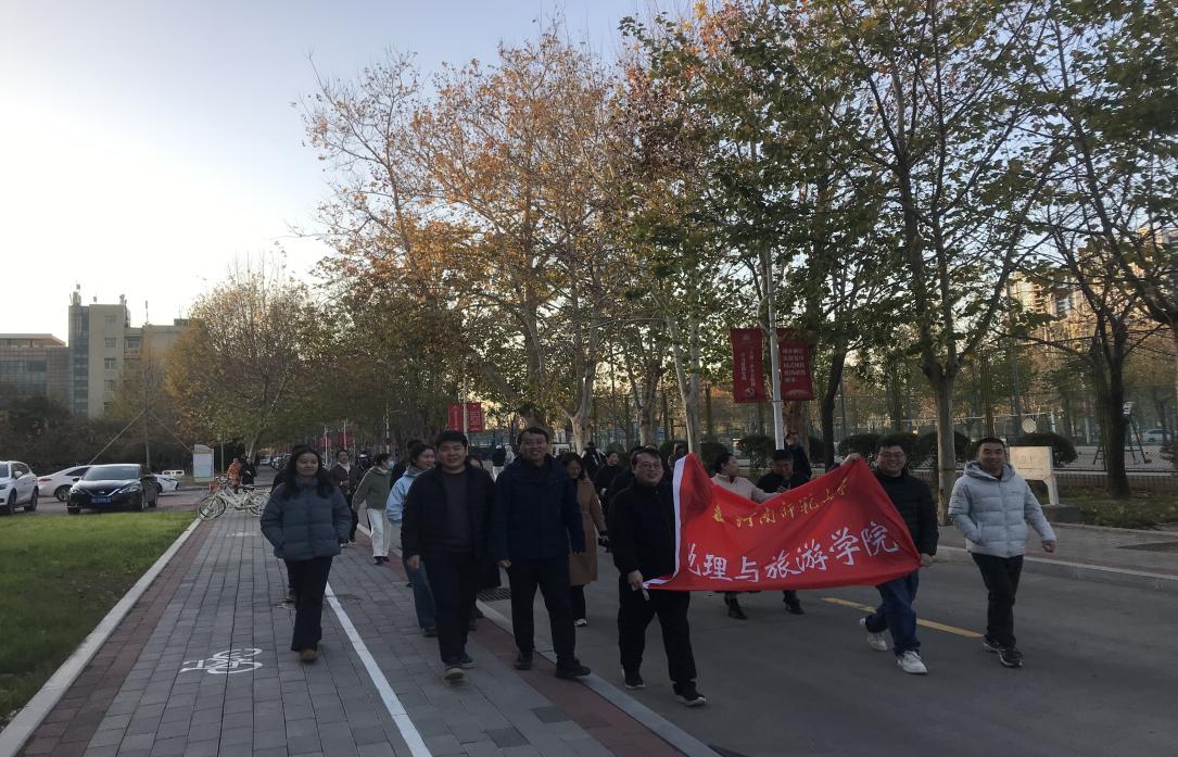 为丰富教职工业余文化生活,倡导积极健康的生活理念,增强学院凝聚力与向心力,11月18日,地理与旅游学院工会在学院南门精心组织举办了2025年度教职工健步走活动。此次活动得到了全院教职工的积极响应和热情参与,在秋日煦暖的阳光下,共同体验运动的乐趣,展现了我院教职工昂扬向上的精神风貌。