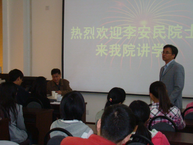 4月25日上午9点,中国科学院院士、中国数学会副理事长、天元基金会评专家、四川大学长江学者李安民教授应邀在数学与信息科学学院一楼小报告厅为部分师生做了题为“环簇上的极值度量”的学术报告。报告会由数学学院院长李兴校教授主持,相关的数学学院领导、部分青年骨干教师和研究生等参加了报告会。