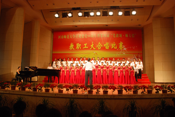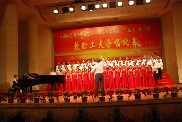 在比赛中,我院全体合唱队员发挥了较高演出水准,倾情演绎红色经典歌曲《四渡赤水出奇兵》。他们以雄壮纯美的合唱技艺和良好的整体表现,向大家展示了数学学院教职工朝气蓬勃、积极向上的精神风貌;他们用激昂的旋律,脉搏中涌动的沸腾热血表达了对党对祖国的满腔热情和衷心祝福。