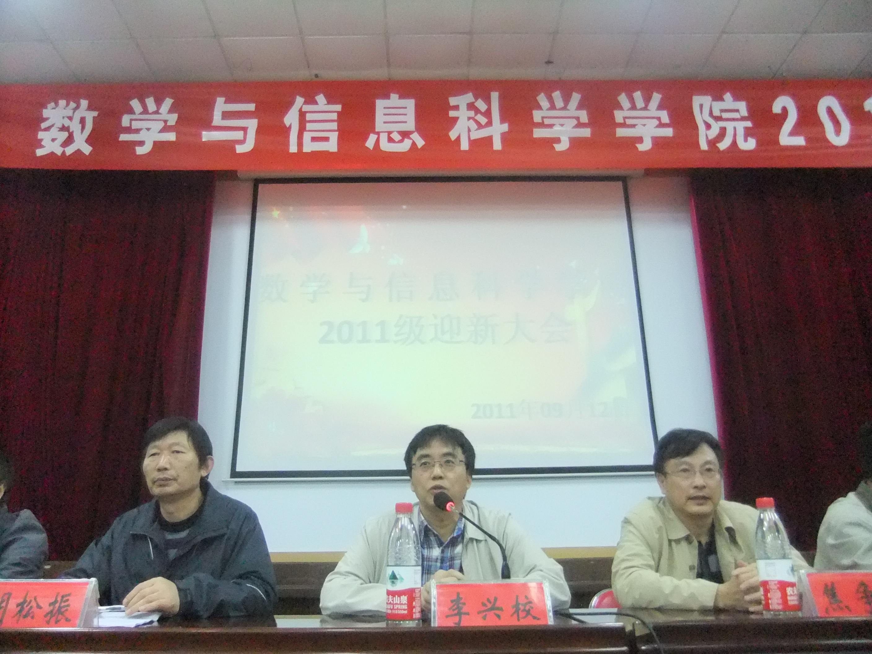 庄严的国歌声过后,迎新大会正式开始。首先,院党委书记焦争鸣代表我院向2011级新生表示热烈的欢迎和亲切的问候,并从心理、生活、学习等方面给同学们提出希冀与祝愿,要求同学们学会节制、融入、宽容、自我调节,不断认识、发现、挑战自我,争做栋梁之才。而后,院长李兴校就我院现状及发展历史向同学们做简要介绍,强调我院“以学生为根本”的教学理念和培养多元化人才的整体目标。教师代表田长安代表全体教师承诺:将怀着满腔热情教学,兢兢业业工作,尽己所能,绝不愧对学生。