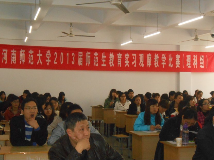 本次教学观摩大赛旨在检验师范毕业生教育实习成果,促进师范生教学技能的提高。来自数学院、化学院、物理院和生命科学学院等共14名优秀选手为大家带来一场内容丰富、构思精巧的教学观摩比赛。教学内容涉及正弦定理、弹力、合情推理等,展示了各位参赛选手良好的教学技能和清晰的讲课思路。其中,我院冯举山同学利用ppt效果结合几何画板工具将正弦定理讲解得通俗易懂;王艳艳同学声情并茂,思路清晰,将合情推理中的归纳推理刻画得入木三分;李丹同学精美的ppt将物体的三视图的概念及相关知识与应用形象地展示出来。最后王艳艳同学以75.37分夺得小组赛冠军,李丹同学以75.00分夺得小组赛亚军,冯举山同学也以72.25分获得小组赛第七名。